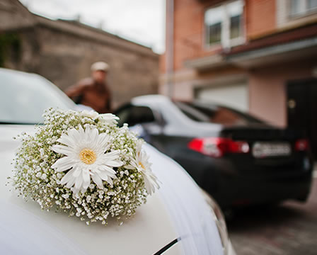 依新人喜好搭配純白緞帶、紅色車頭彩與門把花飾,即刻展現儀式感